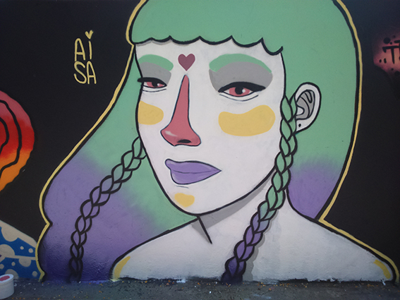 Mural done for Fem Rimes Fem Graff Festival about the poem "Missions Pendents" (Pending Missions) of Beatriz Viol García.