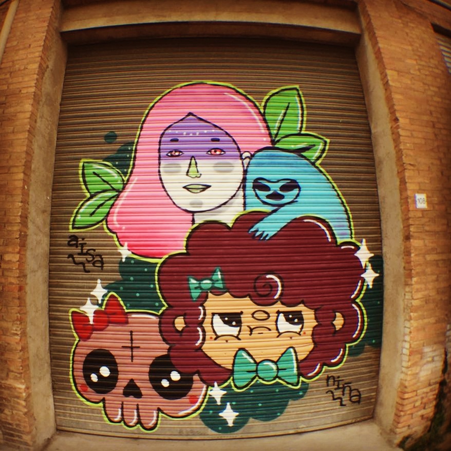 Canvas done with the artists Vegan Bunnies, Malicia and Numi in the event Urban Art by Fundació Cuixart